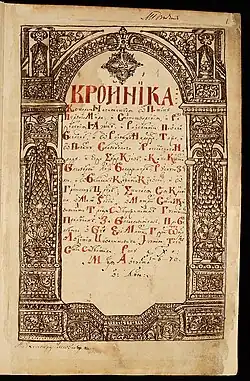 The Hustyn Chronicle is a 17th-century chronicle detailing the history of Ukraine until 1598. It was written in Church Slavonic.[1]