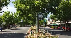 | Hutt Street, Adelaide, looking north. The London plane trees and median strip rose beds are prominent features of the street throughout its length | |