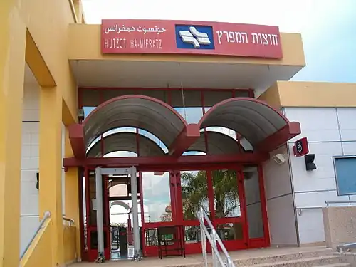 Hutzot HaMifratz railway station (Hebrew: תחנת הרכבת חוצות המפרץ, Taḥanat HaRakevet Ḥutzot HaMifratz) is an Israel Railways passenger station serving Hutzot HaMifratz Mall (Hebrew: קניון חוצות המפרץ), Israel's largest open-air mall, and the surrounding Haifa Bay industrial zone in the north of Haifa.