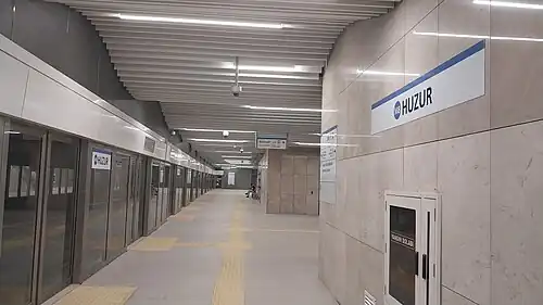 Huzur is an underground station on the M8 line of the Istanbul Metro.[1][2] It is located on Eski Üsküdar Yolu Street in the Adem Yavuz neighbourhood of Ümraniye. It was opened on 6 January 2023.[3]