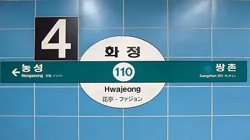 | Revised Romanization | Hwajeong yeok | ||||||||||