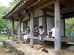 Sachon spent his later years, after the 1545 purge of scholars called Eulsa sahwa (을사사화),[5][6] here training young scholars. Both Chŏng Ch'ŏl and Sŏhadang Kim Sŏngwŏn studied here. Inside the pavilion there are on display poems by Song Si-yŏl and Im Ŏngnyŏng.[1]