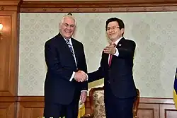 Hwang Kyo-ahn (Korean: 황교안; born 15 April 1957) is a South Korean politician and prosecutor who served as the acting president of South Korea from 2016 to 2017 and as the prime minister of South Korea from 2015 to 2017.