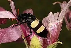 Hycleus oculatus is a species of blister beetle in the family Meloidae endemic to Southern Africa. The species was previously named as Mylabris oculata (CMR bean beetle). It is commonly called the CMR blisterbeetle after the Cape Mounted Riflemen.[1]