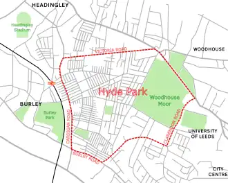![]() Hyde Park ![]() Hyde Park Location within West Yorkshire | |