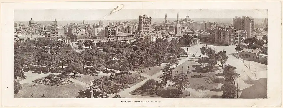- ^ a b c "History of Hyde Park". City of Sydney. 29 November 2010. Archived from the original on 25 March 2014. Retrieved 2 August 2013.