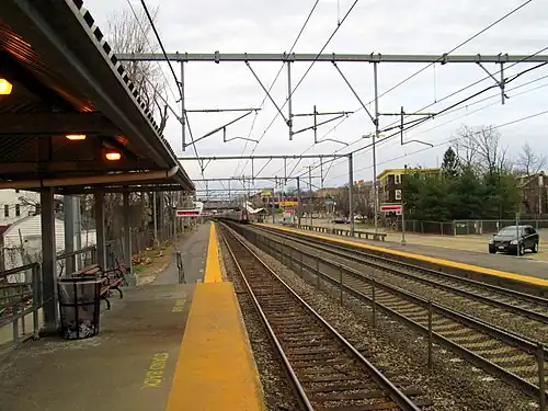 The New Haven built a large overhead station building adjacent to River Street around 1913, replacing the earlier depot.[12][13] The station was similar to other stations built by the railroad in and around New York City, rather than to geographically nearer stations.[14] The overhead station structure was demolished during the 1970s, leaving just staircases from River Street leading to bare platforms to serve passengers. The NYNH&H folded into Penn Central in 1969, who sold the line and station to the Massachusetts Bay Transportation Authority (MBTA) in 1973.[1] Conrail took over Penn Central in 1976 and the Boston & Maine Railroad was contracted to operate the southside commuter lines starting in March 1977, thus marking the sixth operator to run trains to Hyde Park.[1]