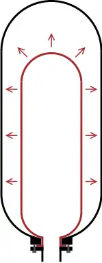 For low pressure water system use the water usually fills a rubber bladder within the tank (pictured), preventing contact with the tank which would otherwise need to be corrosion resistant. Units designed for high-pressure applications such as hydraulic systems are usually pre-charged to a very high pressure (approaching the system operating pressure) and are designed to prevent the bladder or membrane being damaged by this internal pressure when the system pressure is low. For bladder types this generally requires the bladder to be filled with the gas so that when system pressure is zero the bladder is fully expanded rather than being crushed by the gas charge. To prevent the bladder being forced out of the device when the system pressure is low there is typically either an anti-extrusion plate attached to the bladder that presses against and seals the entrance, or a spring-loaded plate on the entrance that closes when the bladder presses against it.