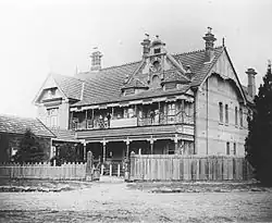 The second was the hotel. It began as the Belgravia Hotel which was completed in 1891.[3] The hotel was a health retreat and the building was constructed in Queen Anne style. It was owned and operated by Mr and Mrs Ellis and was acquired by Mark Foy in 1903.[2]