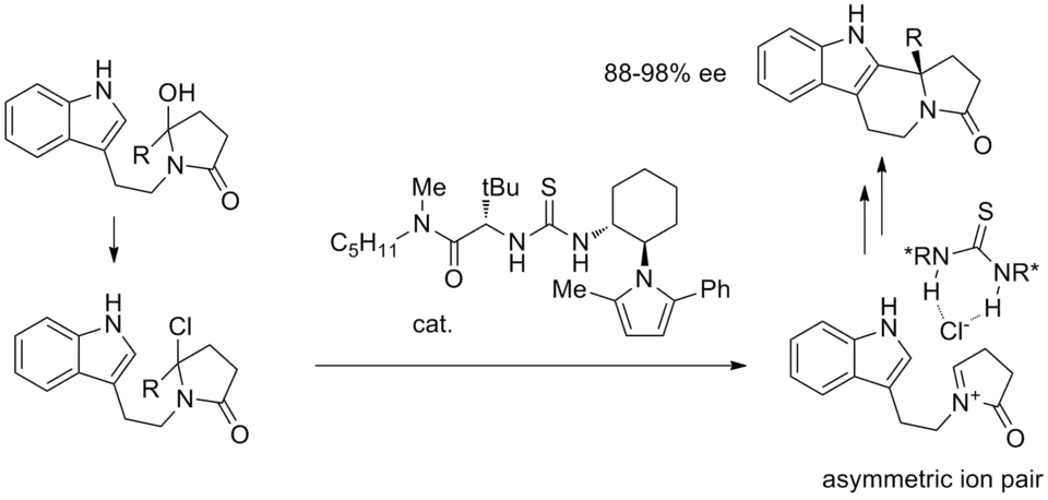 - ^ Raheem, I. T.; Thiara, P. S.; Peterson, E. A.; Jacobsen, E. N. (August 2007). "Enantioselective Pictet-Spengler-type Cyclizations of Hydroxylactams: H-Bond Donor Catalysis by Anion Binding". J. Am. Chem. Soc. 129 (44): 13404–13405. doi:10.1021/ja076179w. PMID 17941641.