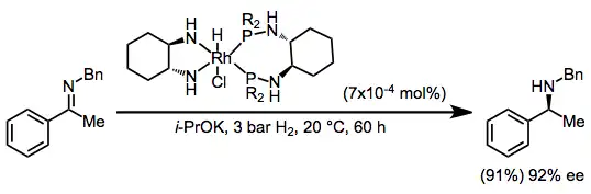 - ^ Becalski, Adam G.; Cullen, William R.; Fryzuk, Michael D.; James, Brian R.; Kang, Guo J.; Rettig, Steven J. (1991). "Catalytic asymmetric hydrogenation of imines. Use of rhodium(I)/Phosphine complexes and characterization of rhodium(I)/Imine complexes". Inorganic Chemistry. 30 (26): 5002–5008. doi:10.1021/ic00026a027.