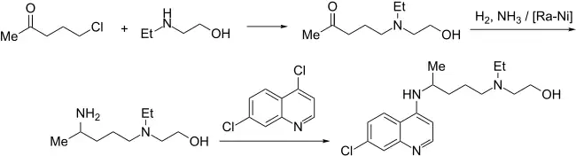 - ^ Surrey AR, Hammer HF (1950). "The Preparation of 7-Chloro-4-(4-(N-ethyl-N-β-hydroxyethylamino)-1- methylbutylamino)-quinoline and Related Compounds". Journal of the American Chemical Society. 72 (4): 1814–1815. Bibcode:1950JAChS..72.1814S. doi:10.1021/ja01160a116.