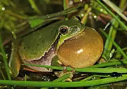 8. ^ a b Friedl, Thomas W. P.; Klump, Georg M. (2002-01-01). "The vocal behaviour of male European treefrogs (Hyla arborea): implications for inter-and intrasexual selection". Behaviour. 139 (1): 113–136. doi:10.1163/15685390252902319. ISSN 1568-539X.