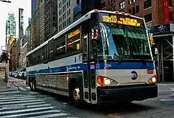 The SIM1 goes to 6th Avenue and Houston Street, the SIM7 goes to Sixth Avenue and 14th Street, the SIM1C and SIM10 go to Central Park South and Sixth Avenue, and the SIM11 goes to 57th Street and Third Avenue. The SIM1, SIM7, SIM10, and SIM11 operate during the rush hour only. The SIM1C operates 24 hours per day, but does not run in the peak direction during rush hours.[2]