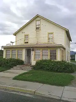 The Hyland Hotel, also briefly known as the Everglenn Hotel, is a historic hotel building located at 333 W Evergreen Avenue in the heart of Palmer, Alaska. The Hyland Hotel is recognized as a building of historical significance by the city of Palmer and was officially listed by the United States Department of the Interior on the National Register of Historic Places on June 21, 1991. This property was built as a direct result of The New Deal Colony Settlement of the Matanuska-Susitna Valley in Alaska, where settlers were brought to the Matanuska-Susitna valley to colonize Alaska from 1935 - 1940. It is a 2+1⁄2-story wood-frame structure with a front-gable roof and a glass-enclosed porch that has been converted to hotel rooms which extend across the front of the building. The original building was constructed in 1935 and measures 30 x 30 feet. A 10 x 14 foot addition was built on the rear of the building in 1953 to add additional living and storage space.