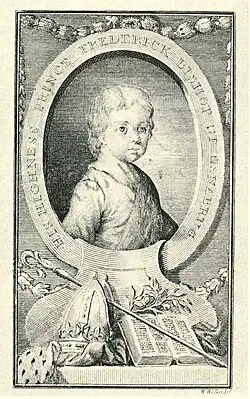 The work was dedicated "to his Royal Highness Prince Frederick, Bishop of Osnabrug, these hymns, composed for his amusement, are, with all due Submission and Respect, humbly inscribed to him, as the best of Bishops, by his Royal Highness's Most Obedient and Devoted Servant, Christopher Smart."[11] Although the prince, the second son of King George III, was only seven at the time, Smart was given special permission to dedicate the work to the boy through the intervention with the royal family by either Richard Dalton or the King's Chaplain, William Mason.[12]