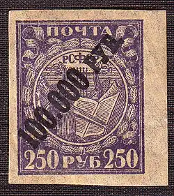 Hyperinflation in early Soviet Russia connotes a seven-year period of uncontrollable spiraling inflation in the early Soviet Union, running from the earliest days of the Bolshevik Revolution in November 1917 to the reestablishment of the gold standard with the introduction of the chervonets as part of the New Economic Policy. The inflationary crisis effectively ended in March 1924 with the introduction of the so-called "gold ruble" as the country's standard currency.