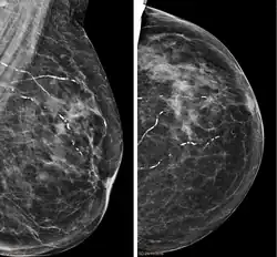 | Right breast mammograms showing several calcified arterioles. Patient 94 years old. | |