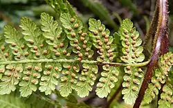 Hypolepis rugosula (common name ruddy ground fern), is a common ground fern found throughout rainforests and wet sclerophyll forests, especially after recent disturbances in the forests.[2]