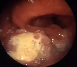 - Sore throat in one location that persists after treatment [1]