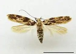 The length of the forewings is 5.5 millimetres (0.22 in) for males and 6.2 millimetres (0.24 in) for females.[1]