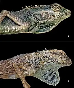- ^ Oliver, P.; Allison, A.; Tallowin, O. (2015). "Hypsilurus auritus". IUCN Red List of Threatened Species. 2015: e.T22528817A22528822. doi:10.2305/IUCN.UK.2015-4.RLTS.T22528817A22528822.en. Retrieved 20 November 2021.