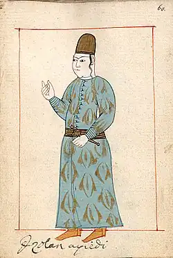 The term iç oğlan ("Inner [Palace] Boy") refers to the boy servants or pages who were taken from Christian parents in the Balkans and converted, according to the devşirme system in the Ottoman Empire, and who worked in the Enderûn, that is, the Inner Palace, one of the three parts of Topkapı Palace in Istanbul. In other words, they were the Inner Palace servants, the staff serving in the private apartments of the Sultan and his family.[1]