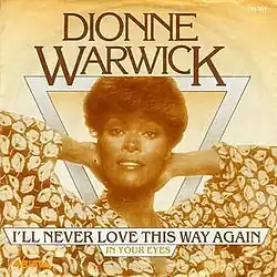 "I'll Never Love This Way Again" is a song written and composed by English musician Richard Kerr and American lyricist Will Jennings,[1] and first recorded by Kerr himself for his album Welcome to the Club as "I Know I'll Never Love This Way Again", released in November 1978. A version by Cheryl Ladd was released first on her self-titled album in July 1978.[2] The song became a hit for American singer Dionne Warwick the following year, which was produced by her labelmate Barry Manilow for Warwick's Arista Records debut, Dionne. It was also recorded by British singer Cherrill Rae Yates.[3]