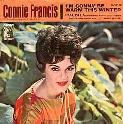 In its international release "I'm Gonna Be Warm This Winter" retained "Al di là" as its B-side in some territories including Australia while in some other territories - including the UK - the B-side of "I'm Gonna Be Warm This Winter" was "Pretty Little Baby," which became an Internet hit in 2025, 63 years after it was originally recorded.[4] Two territories had evidently unique releases of Francis' "I'm Gonna Be Warm This Winter": in New Zealand the track had Francis' rendition of "I Walk the Line" as its flip with neither side marked A-side or B-side, while in Sweden "I'm Gonna Be Warm This Winter" was made a B-side to "Playin' Games" which afforded Francis a #17 hit in April 1963. (Recorded in the same September 13, 1962 recording session as "I"m Gonna Be Warm This Winter" and likewise a Barkan-Hunter composition, "Playin' Games" was issued in territories other than Sweden - including the UK - with "I Was Such a Fool (To Fall in Love with You)" - Francis' precedent US A-side release to "I'm Gonna Be Warm This Winter" - as B-side).[5][6]