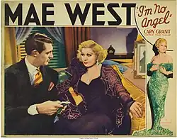 I'm No Angel is a 1933 American pre-Code black comedy film directed by Wesley Ruggles, and starring Mae West and Cary Grant. West received sole story and screenplay credit. It is one of her early films, and, as such, was not subjected to the heavy censorship that dogged her screenplays after Hollywood began enforcing the Hays Code.[4]