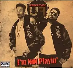 I'm Not Playin' is the only album recorded by the hip-hop duo Ultimate Force, which consisted of emcee Master Rob and DJ-producer Diamond D. The group was discovered and sponsored by Jazzy Jay in the late 1980s, and the album was recorded in his studio in the Bronx, New York, between 1988 and 1990. Ultimate Force was signed to Strong City at the time, but due to label politics and the shuttering of distributor Uni Records, the album was shelved and for the longest time the only available material from the duo was the 12" single "I'm Not Playin'", considered somewhat of an underground classic.