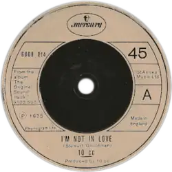 Released in the UK in May 1975 as the second single from the band's third album, The Original Soundtrack, it became the second of the group's three number-one singles in the UK between 1973 and 1978, topping the UK Singles Chart for two weeks. "I'm Not in Love" became the band's breakthrough hit outside the United Kingdom, topping the charts in Canada and Ireland as well as peaking within the top 10 of the charts in several other countries, including Australia, West Germany, New Zealand, Norway and the United States.