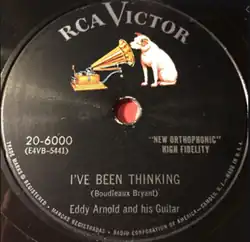 "I've Been Thinking" is a song written by Boudleaux Bryant, performed by Eddy Arnold, and released on the RCA Victor label (catalog no. 20-6000). In January 1955, it peaked at No. 2 on Billboard's country and western juke box chart (No. 3 on the best seller chart).[1] It spent 25 weeks on the charts and was also ranked No. 10 on Billboard's 1955 year-end country and western retail chart and No. 12 on the year-end juke box and disk jockey charts.[1][2]