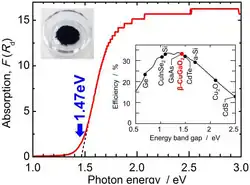 - ^ Tinoco, T.; Rincón, C.; Quintero, M.; Pérez, G. S. N. (1991). "Phase Diagram and Optical Energy Gaps for CuInyGa1−ySe2 Alloys". Physica Status Solidi A. 124 (2): 427–434. Bibcode:1991PSSAR.124..427T. doi:10.1002/pssa.2211240206.