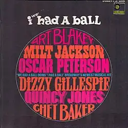 I/We Had a Ball is an album consisting of jazz versions of songs from Jack Lawrence and Stan Freeman's musical I Had a Ball performed by Art Blakey, Milt Jackson, Oscar Peterson, Dizzy Gillespie, Quincy Jones and Chet Baker which was released by Limelight in 1965.[1][2]