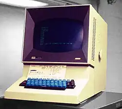 The text-only monochrome IBM 2260 cathode-ray tube (CRT) video display terminal (Display Station) plus keyboard was a 1964 predecessor to the more-powerful IBM 3270 terminal line which eventually was extended to support color text and graphics.