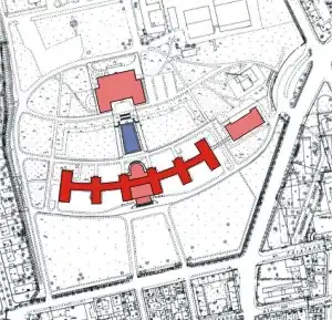 The IG Farben Building was developed on land known as the Grüneburggelände. In 1837, the property belonged to the Rothschild family. It was part of the "Affensteiner Feld", an area in the north of today's Frankfurt Westend District. The name Affenstein derives from an ancient Christian memorial that once stood here on the road outside Frankfurt. It was known as the "Avestein" as in Ave Maria but in the local Frankfurt dialect it was called the "Affe Stein". In 1864, the city's psychiatric hospital was erected on the site.[3] Here, Dr Heinrich Hoffman hired Alois Alzheimer to work in the hospital, where they both explored progressive methods of treating the mentally ill.[4] The Grüneburgpark was established in 1880 on the larger western part of the site.