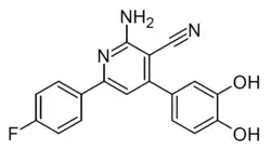 IL-4-inhibitor-1 is an experimental drug which was the first molecule discovered that interferes with the binding between interleukin-4 and the Interleukin-4 receptor, and so blocks its activity in the body. Interleukin-4 is a cytokine signalling molecule which has an important role in processes such as inflammation and wound repair, but excessive IL-4 activity is a feature of some forms of cancer as well as some inflammatory conditions such as asthma, so blocking IL-4 activity may have several potential medical applications. IL-4-inhibitor-1 binds with reasonable affinity but is unlikely to be potent enough for clinical use, however its development is likely to lead to the development of more potent related drugs. The interleukin-4 receptor is also the target for a different cytokine interleukin-13,[1][2] but it remains unclear at this stage whether IL-4-inhibitor-1 is selective for inhibition of IL-4 while sparing IL-13 activity, or if it blocks the activity of both cytokines.[3][4]