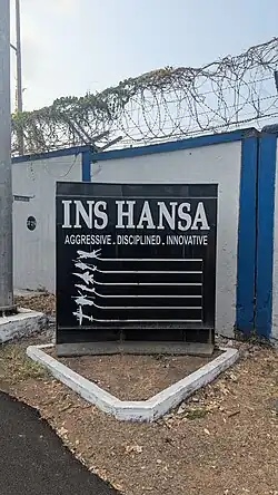 INS Hansa, (IATA: N/A, ICAO: VOGO) is an Indian naval air station located near Dabolim in Goa, India.[1] It is India's biggest naval airbase.[2] The military air base has a civil enclave, that operates as Dabolim Airport.
