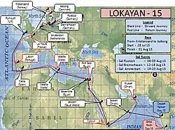 In 2015, Tarangini began an eight-month voyage (4 May – 3 December 2015) to participate in the annual tall ship races and other events at Europe, organised under the aegis of Sail Training International. During these eight months, the ship traveled approximately 17,000 miles under sail through the Red Sea, the Mediterranean Sea and the North Sea. She visited 17 ports in 14 countries to showcase India to the world, and demonstrate the Indian Navy's global reach. The theme for the voyage, codenamed LOKAYAN-15, was chosen as "tacking for a broader reach". The tall ship races were conducted primarily off the coast of United Kingdom, Norway, Denmark, Germany and the Netherlands. Tarangini also participated in the tall ship race from Kristiansand, Norway to Aalborg, Denmark. She also participated in associated sail events such as Sail Rostock, Sail Bremerhaven in Germany and Sail Amsterdam in the Netherlands.[8]