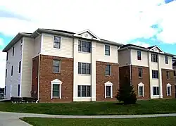 IPFW was predominately a commuter school, with only six percent of the student body living in university-operated housing and 94 percent living off campus; 99 percent of students had cars on campus.[16] Beginning with fall semester 2004, the university introduced student dormitories on the Waterfield Campus. Phase II of the student housing initiative continued with two more buildings in August 2007, with total student housing occupancy approaching nearly 750 residents. Phase III of the project, which opened in August 2010, added 448 beds divided between four new residence buildings, bringing total occupancy to more than 1,200 students. Another student community center, The Clubhouse, a larger version of the existing Cole Commons, and a maintenance facility were also added.[22]