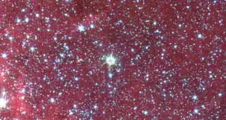 ![]() The yellow hypergiant star IRAS 18357−0604, viewed by the IRAC HEALPix survey. Stephenson 2 DFK 1 is on the lower left. Credit: Université de Strasbourg/CNRS (2003) | |