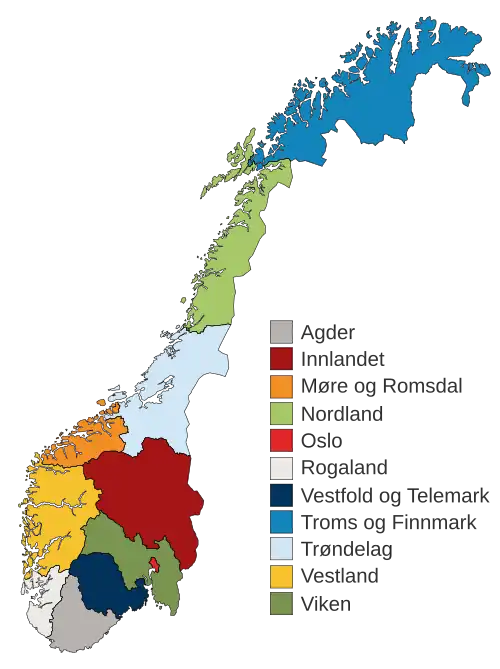 Currently, for Norway, ISO 3166-2 codes are defined for the following subdivisions: