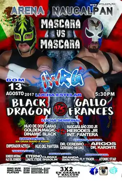 - ^ a b c d e f "Black Dragon se queda con la máscara del Gallo Francés". The Gladiatores (in Spanish). August 14, 2017. Retrieved October 15, 2018.
