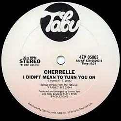 "I Didn't Mean to Turn You On" is the debut single originally performed by American singer Cherrelle and written by Jimmy Jam and Terry Lewis in 1984. In the song, the singer is attempting to rebuff unwanted sexual advances following a date, including pressure to have a one-night stand.[3] In 1986, "I Didn't Mean to Turn You On" was covered by English singer Robert Palmer. Palmer's cover fared better on the pop chart while Cherrelle's version was a hit on the R&B chart.