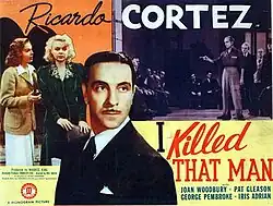 I Killed That Man is a 1941 American mystery film directed by Phil Rosen and starring Ricardo Cortez, Joan Woodbury and Iris Adrian.[4] Produced by the King Brothers for release by Monogram Pictures, it is a remake of the 1933 film The Devil's Mate which Rosen had also directed.