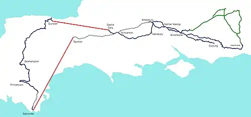 Written in March 1943 and left incomplete at the time of his death in 1948, it is an account of a walking tour Welch took in the summer of 1933, when he was eighteen.[1] His travels took him from his grandfather's house in Henfield, West Sussex, through Hampshire, Wiltshire, Somerset and Devon; he then returned to Henfield. The text continues with an abbreviated account of a trek following the Pilgrims' Way, which ends at Cocking.