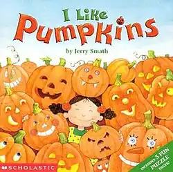 I Like Pumpkins is an illustrated book for young children written and illustrated by children's book author Jerry Smath in which a young girl vividly describes her fondness for pumpkins at Halloween. The book is written in rhyming text and includes five pages of pumpkin-related games and puzzles.[1] It has been used in elementary classrooms as both a class reading and supplementary resource. Schools have also used the book as a part of interdisciplinary units on pumpkins which may incorporate the planting and growing of pumpkin plants, arts and crafts activities related to pumpkins, or basic mathematics activities that use pumpkins as units for counting or grouping.[2][3]