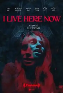 I Live Here Now is a 2025 American horror thriller drama film written and directed by Julie Pacino in her feature directorial debut.[2] The film starring Lucy Fry, Madeline Brewer, Matt Rife and Sheryl Lee follows a woman, who finds herself trapped in a remote hotel where the violent echoes of her past come alive.[3]