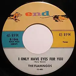 The Flamingos recorded a doo-wop adaptation of "I Only Have Eyes for You" at Bell Sound Studios in New York City in 1959.[5][9] Their version was commercially successful, peaking at number 11 on the US Billboard Hot 100 chart and number 3 on the Billboard Hot R&B chart.[10][11] In Canada it reached number 7.[12]